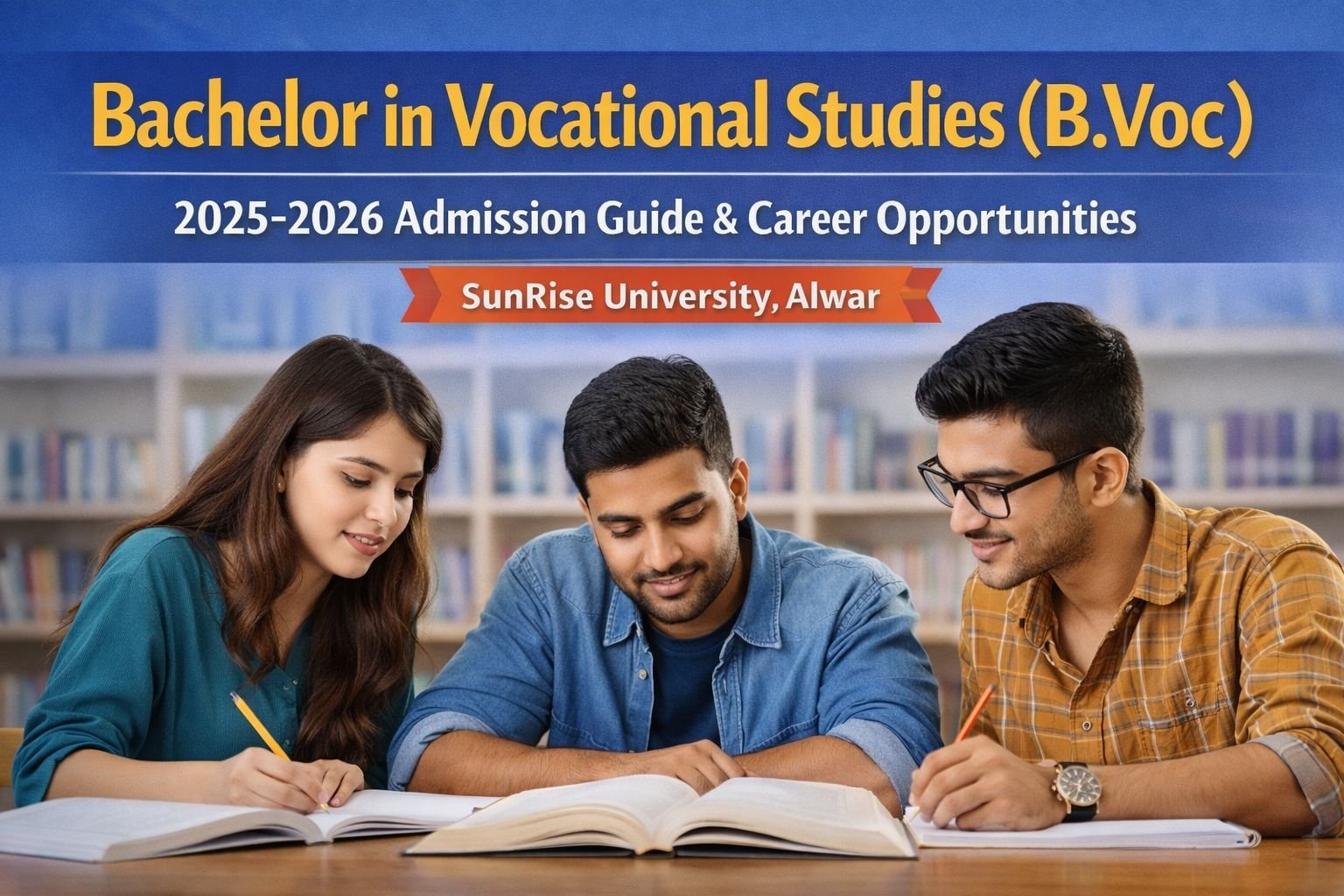 Vocational education has become one of the most practical and career-focused paths for students who want industry-aligned skills and job-ready expertise. At Sunrise University, Alwar (Rajasthan, India), the Bachelor of Vocational Studies (B.Voc) is a three-year undergraduate degree that blends classroom learning with hands-on experience β preparing students for real-world careers across sectors.